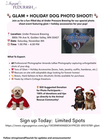 Come have a beer and let your pup shine! Get your dog’s professional holiday photos taken by the amazing Amanda LaRae Photography