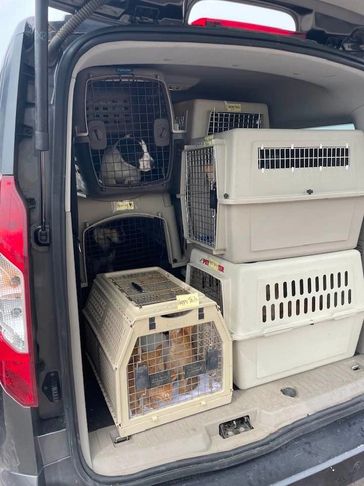 Transporting 30 homeless cats and dogs from Mitchell, SD to Minnesota where five local rescues took them in. May 2022